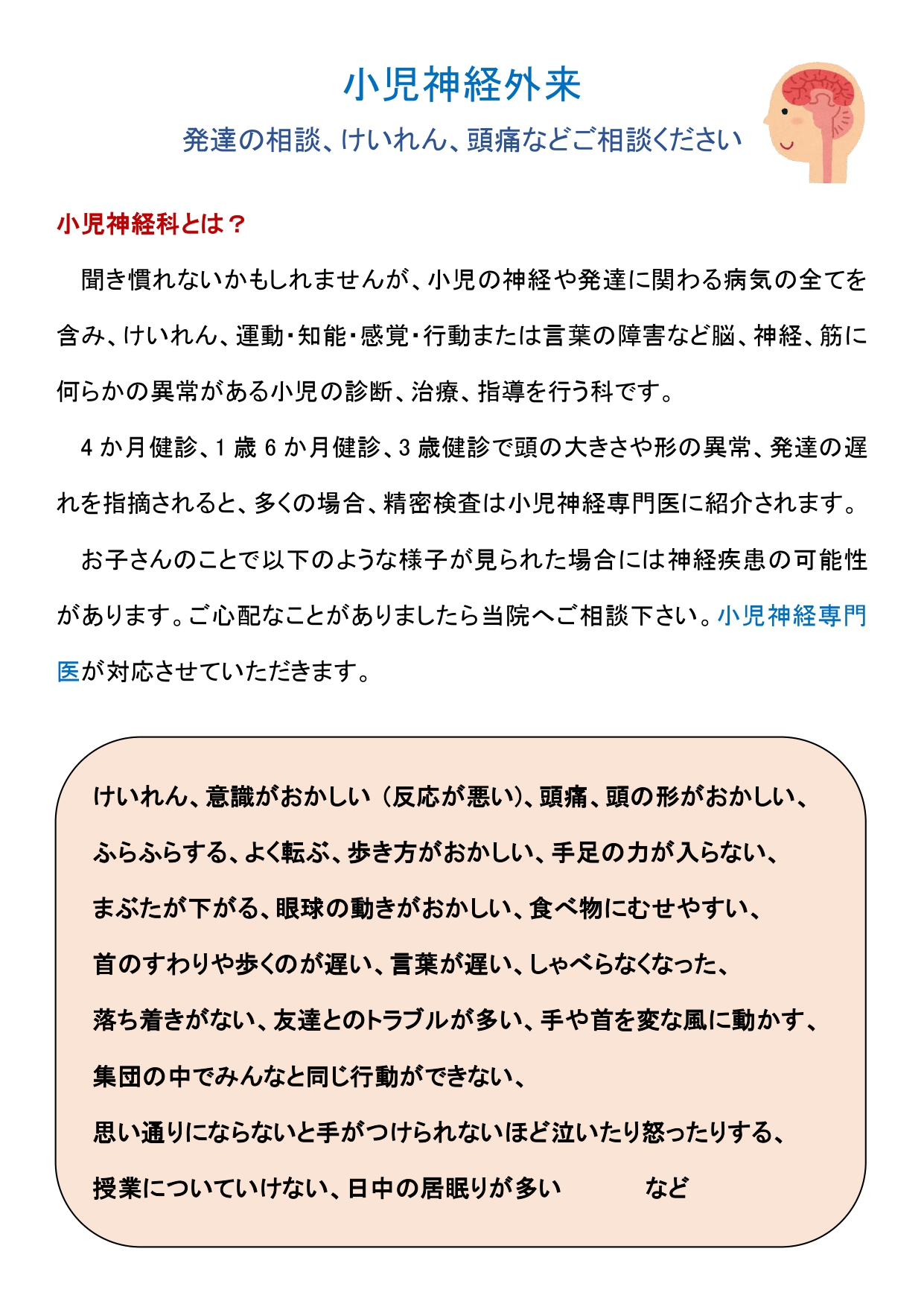 令和6年4月より小児神経外来を新設しております。